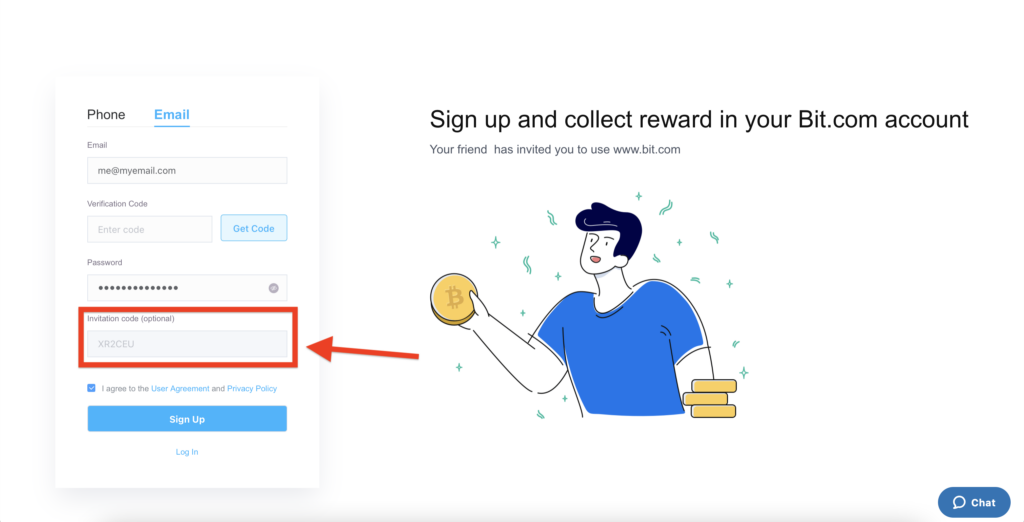 Below, we have provided a screenshot that shows you how to register on Bit.com with the invitation code.