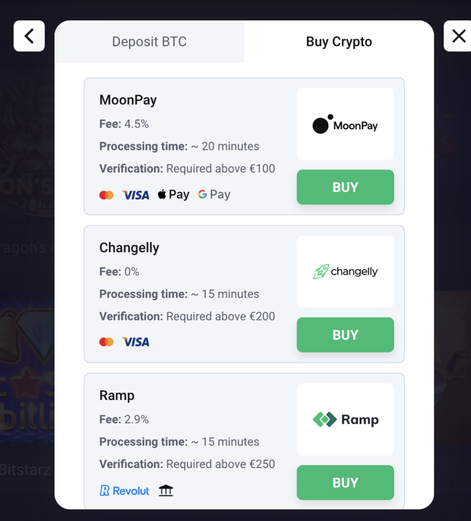 Overall, BitStarz is a trusted crypto casino that is definitely worth trying out for players that are looking to gamble with their coins. BitStarz also offers numerous fiat payment methods, so let’s take a look at all the ways users can deposit cash into the casino.