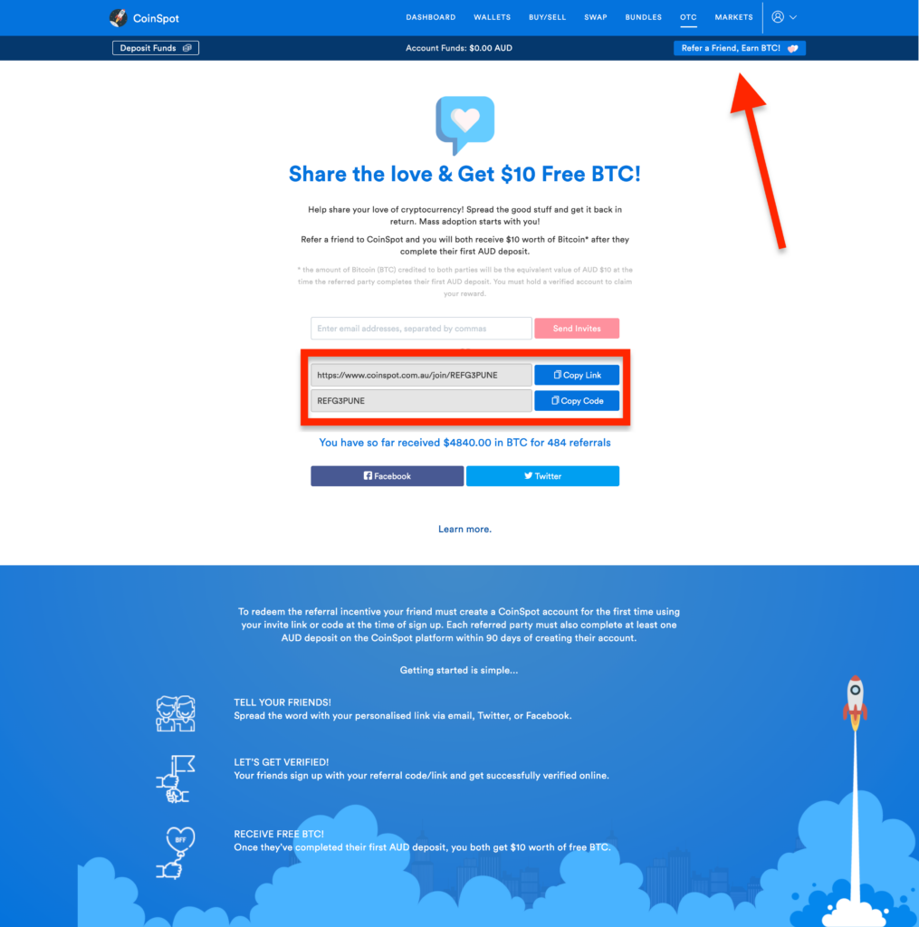 To get your own CoinSpot referral link & code, use the steps outline below.